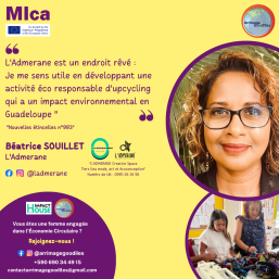 Le projet Mica permet de créer un espace de rencontres et d’échanges de bonnes pratiques entre les femmes engagées dans l’EC des régions insulaires RUP Guadeloupe et celles des régions continentales du Portugal pour établir des partenariats, créer des passerelles en matière de transition de l’économie circulaire et accélérer le processus de changement de pratiques de production, de consommation et de gestion des déchets plus respectueuses de l’environnement.